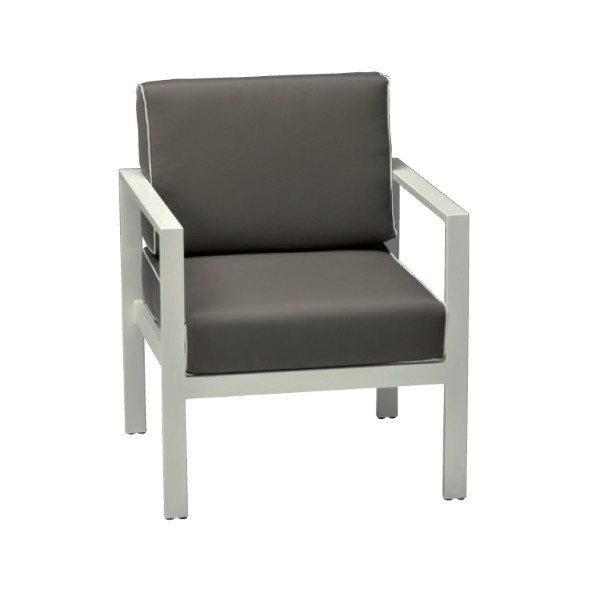 poltrona per uso esterno, struttura in metallo tubolare mm 20×50 zincato e verniciato, completa di cuscini sfoderabili in tessuto acrilico resinato,