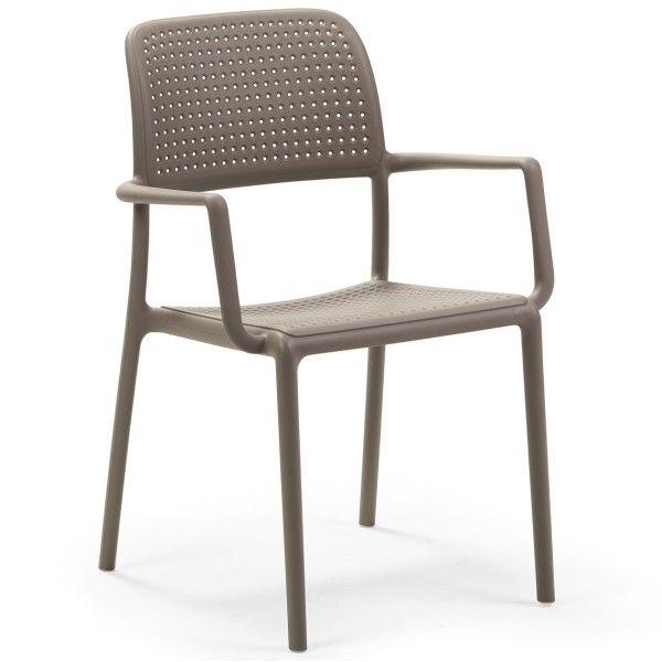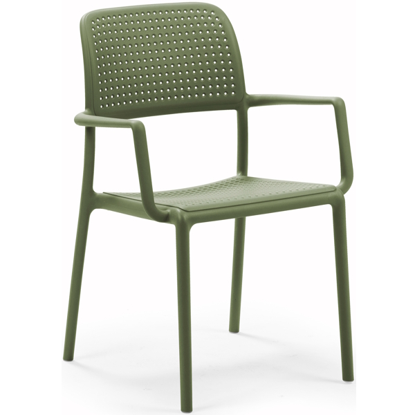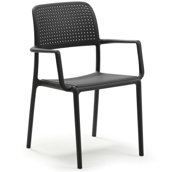 poltroncina impilabile adatta per uso esterno, struttura in polipropilene fiberglass trattato anti-uv e colorato in massa