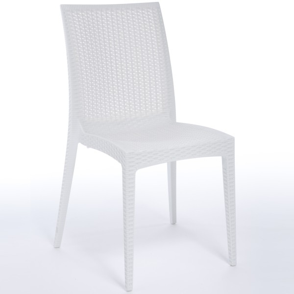 sedia impilabile, adatta per uso esterno, struttura in polipropilene stampato effetto rattan intrecciato, nei colori bianco, antracite, marrone, juta